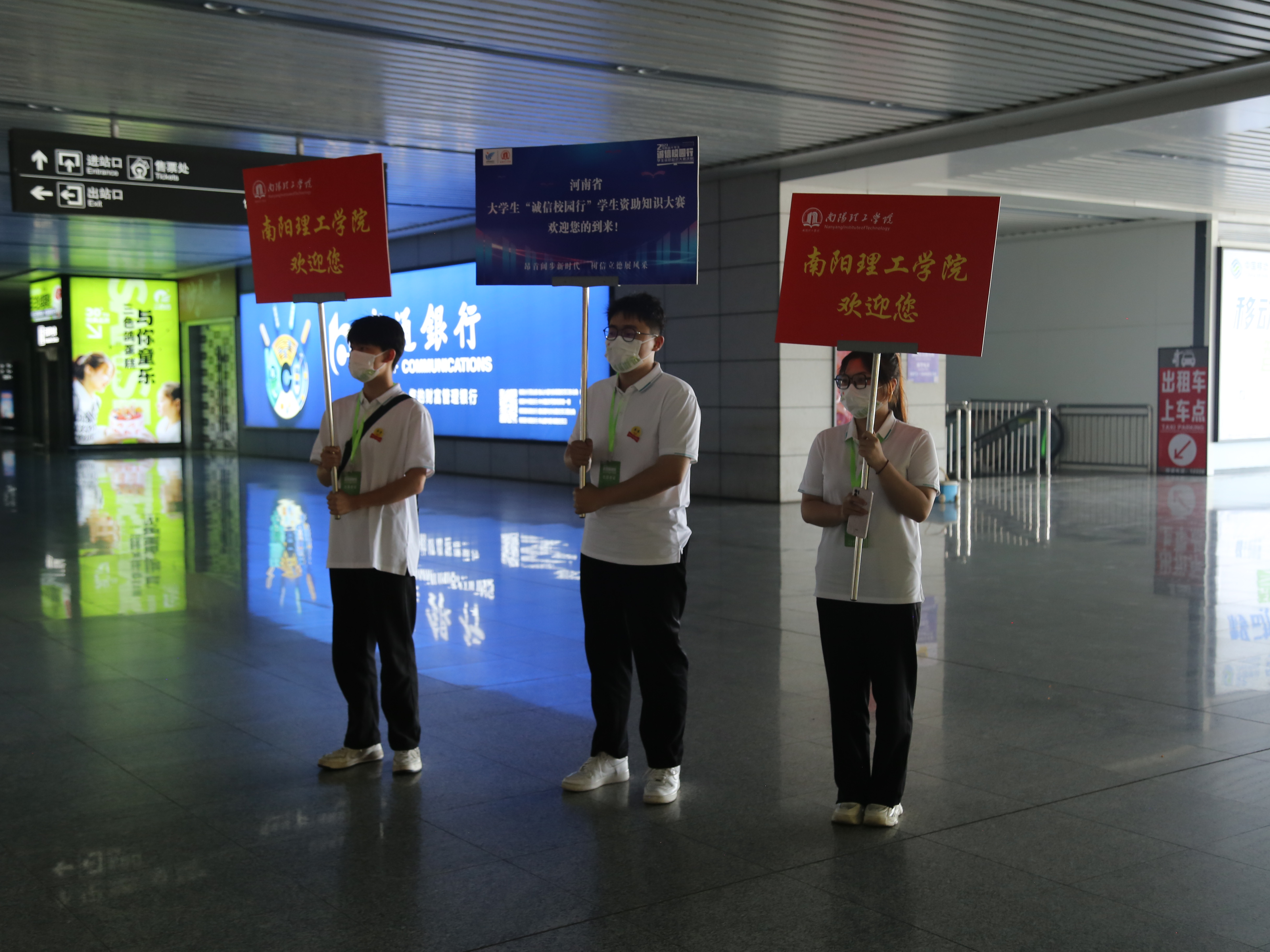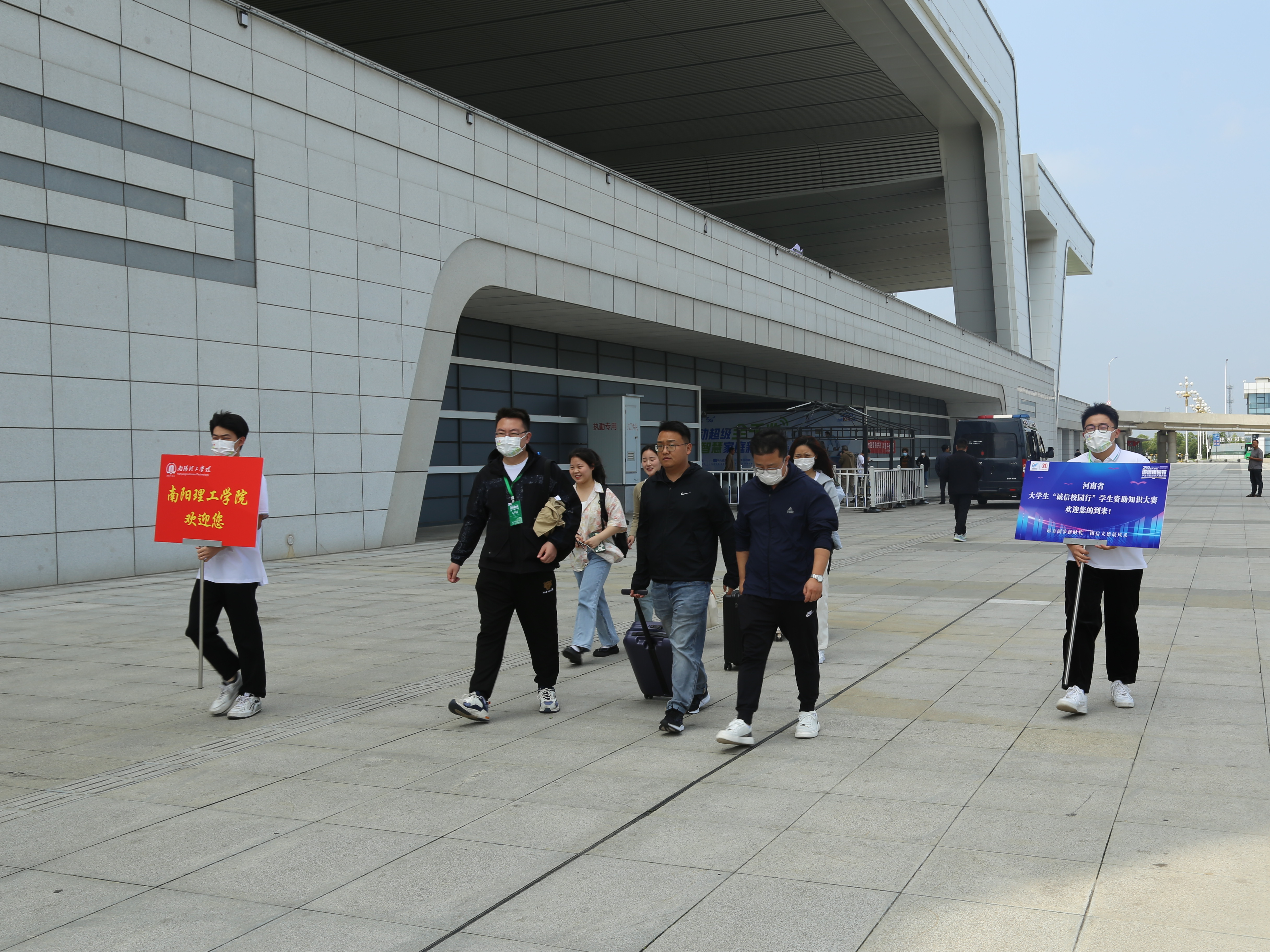 本网讯(学生记者/学通社 张玉靖 纪明哲)5月29日,河南省大学生“诚信校园行”资助知识决赛开始之际,全省36支高校代表队达到南阳。我校学生处处长路瑞峰及工作人员带领学生志愿者们前往高铁站开展接站工作。
