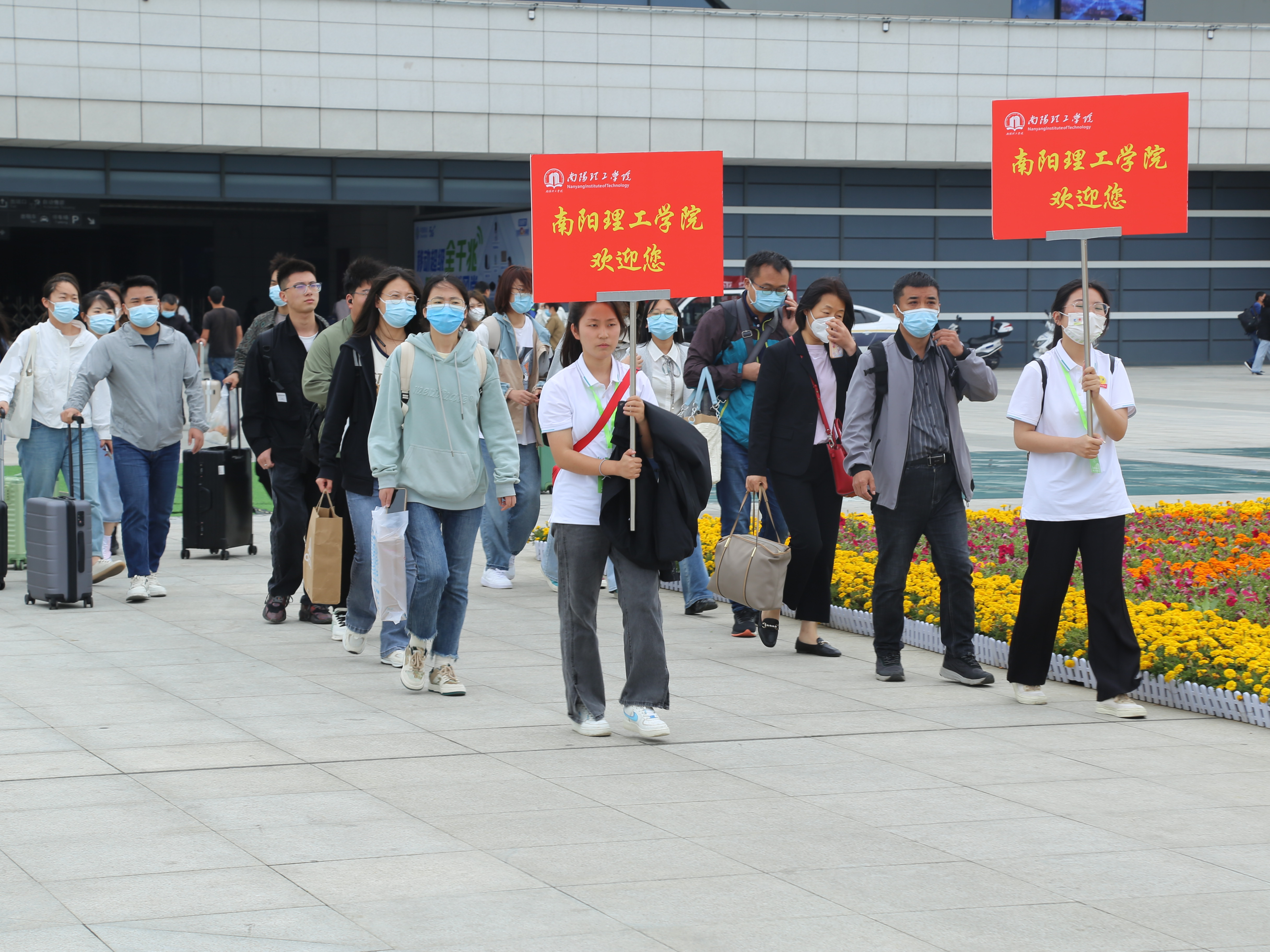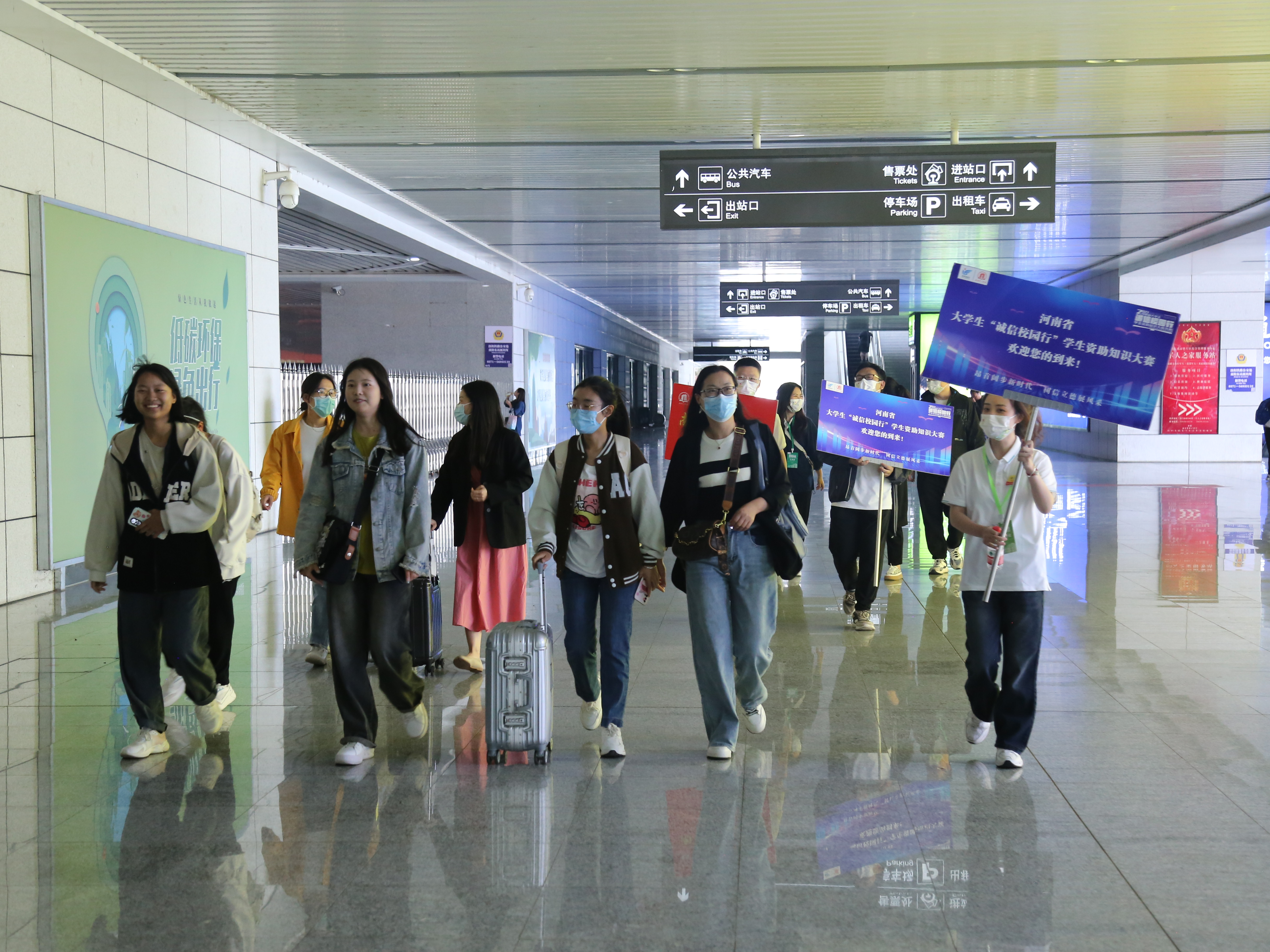 志愿者和高校代表团一起出高铁站