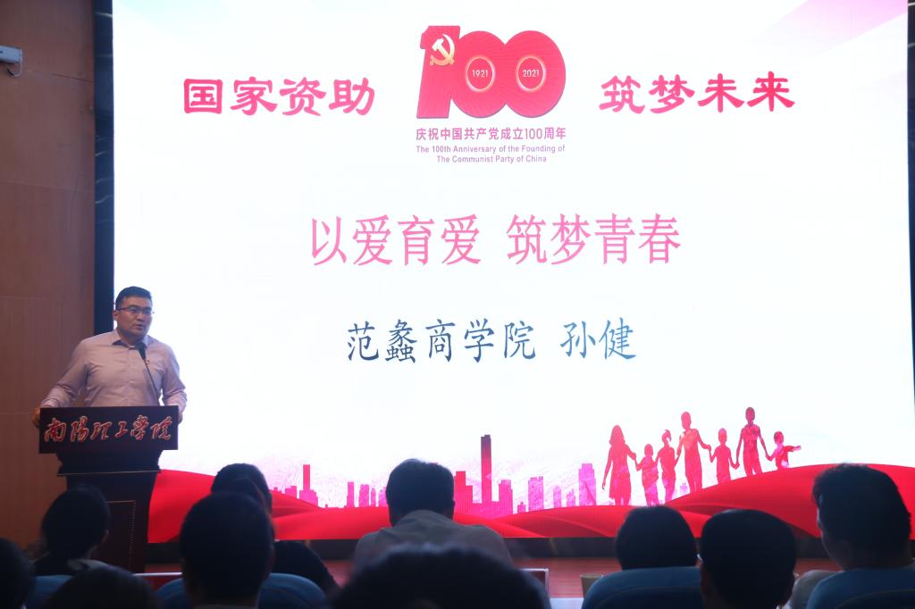 南阳理工学院党委副书记、工会主席张伟教授在讲话中提到学生资助工作是党的一项重要决策部署,承载了千万贫困学生的梦想,学校也始终坚决贯彻党中央关于打好脱贫攻坚战的一系列决策部署,把学生资助工作摆在突出位置,提升广大学生的获得感、幸福感,实现了党和国家不让一名学生因为贫困而失学的庄严承诺。